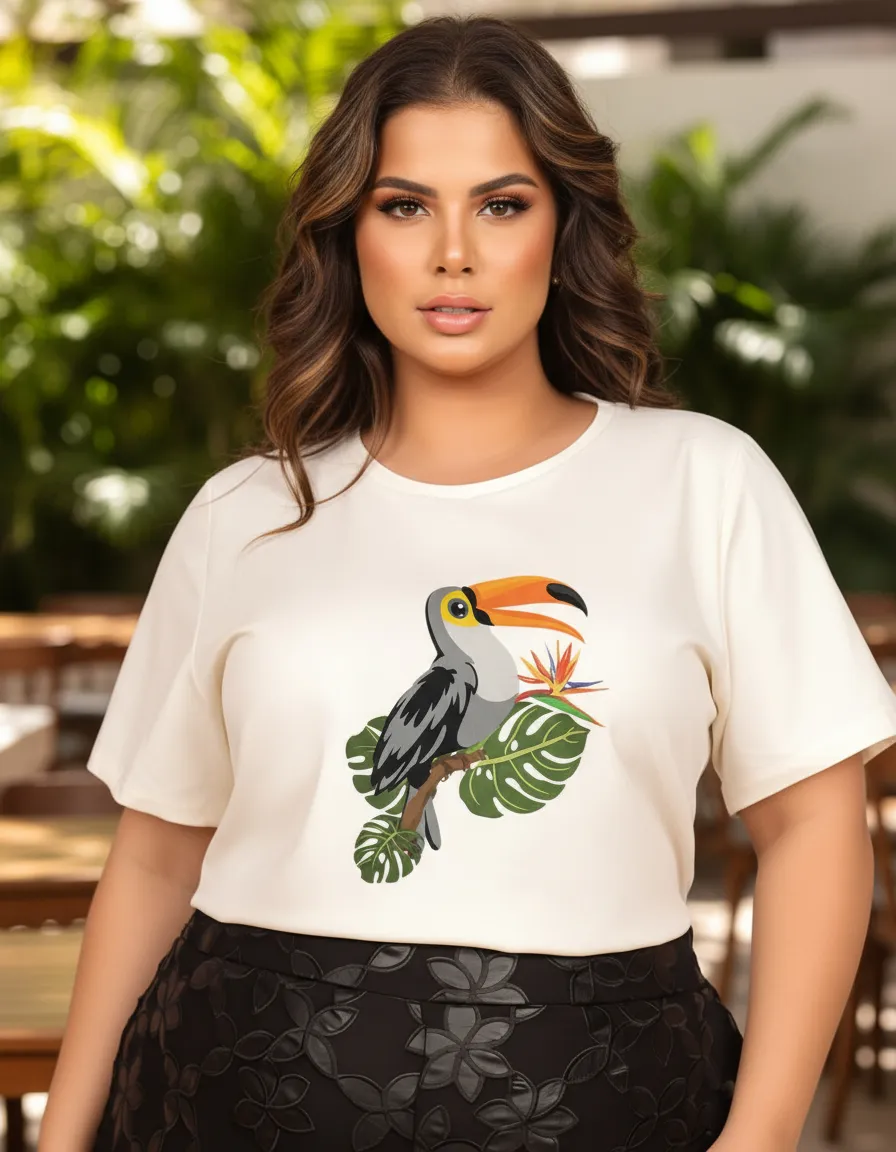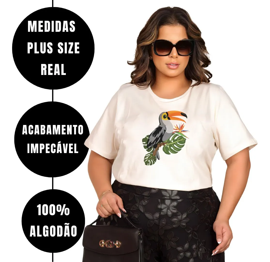 Tshirt Moda Plus Size Malha Confortável Família Tucano