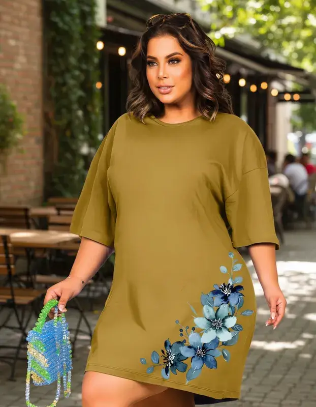 Vestido Camisetão Plus Size Feminino Flor Azul – Primavera/Verão!
