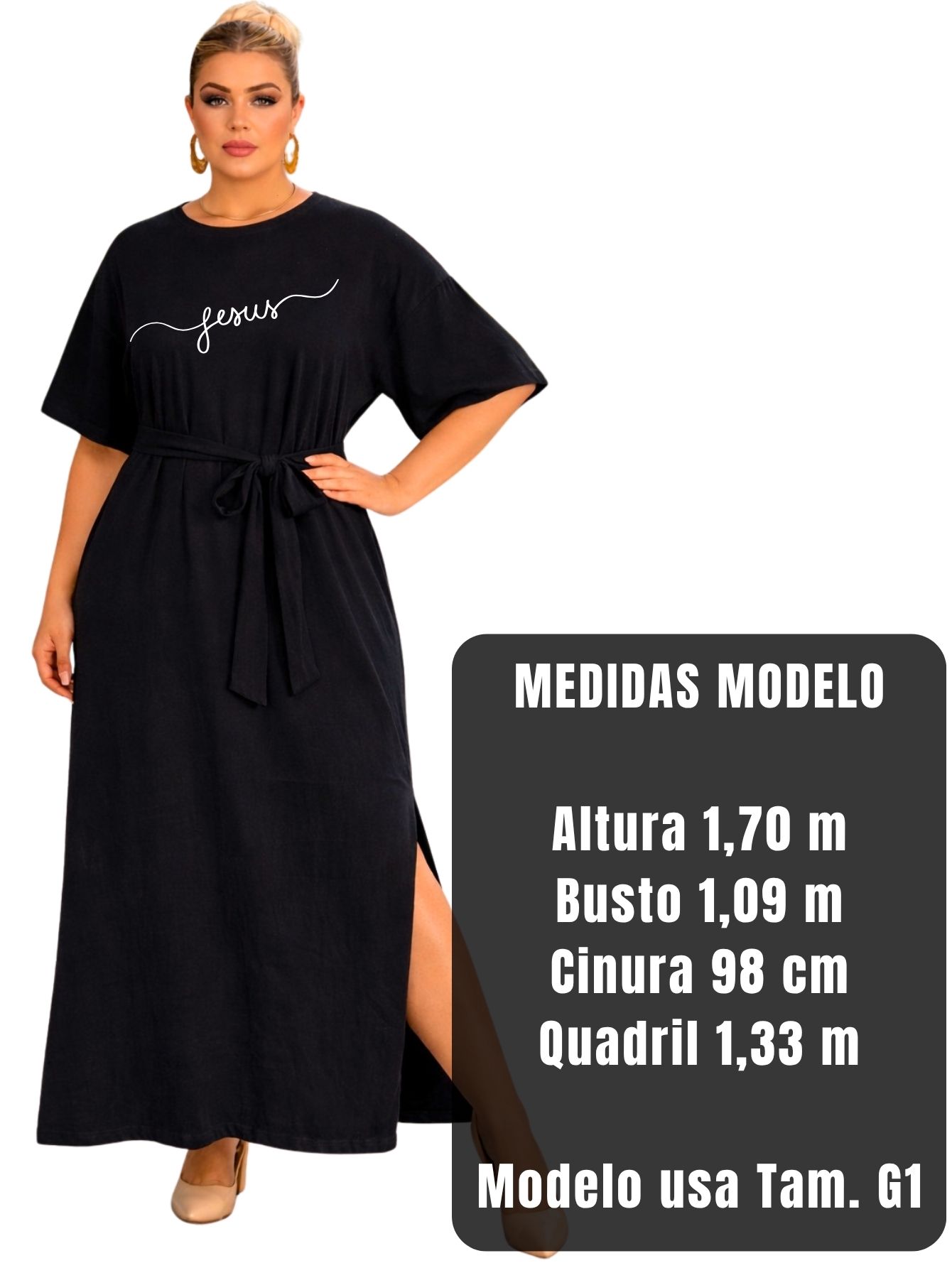 Vestido longo plus size feminino com estampa Jesus