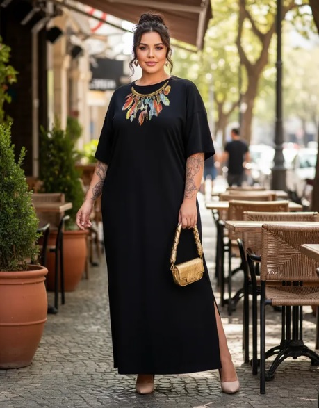 Vestido Longo Plus Size versátil, estilo e conforto nas produções mais descoladas. Imprescindível em seu guarda roupa!