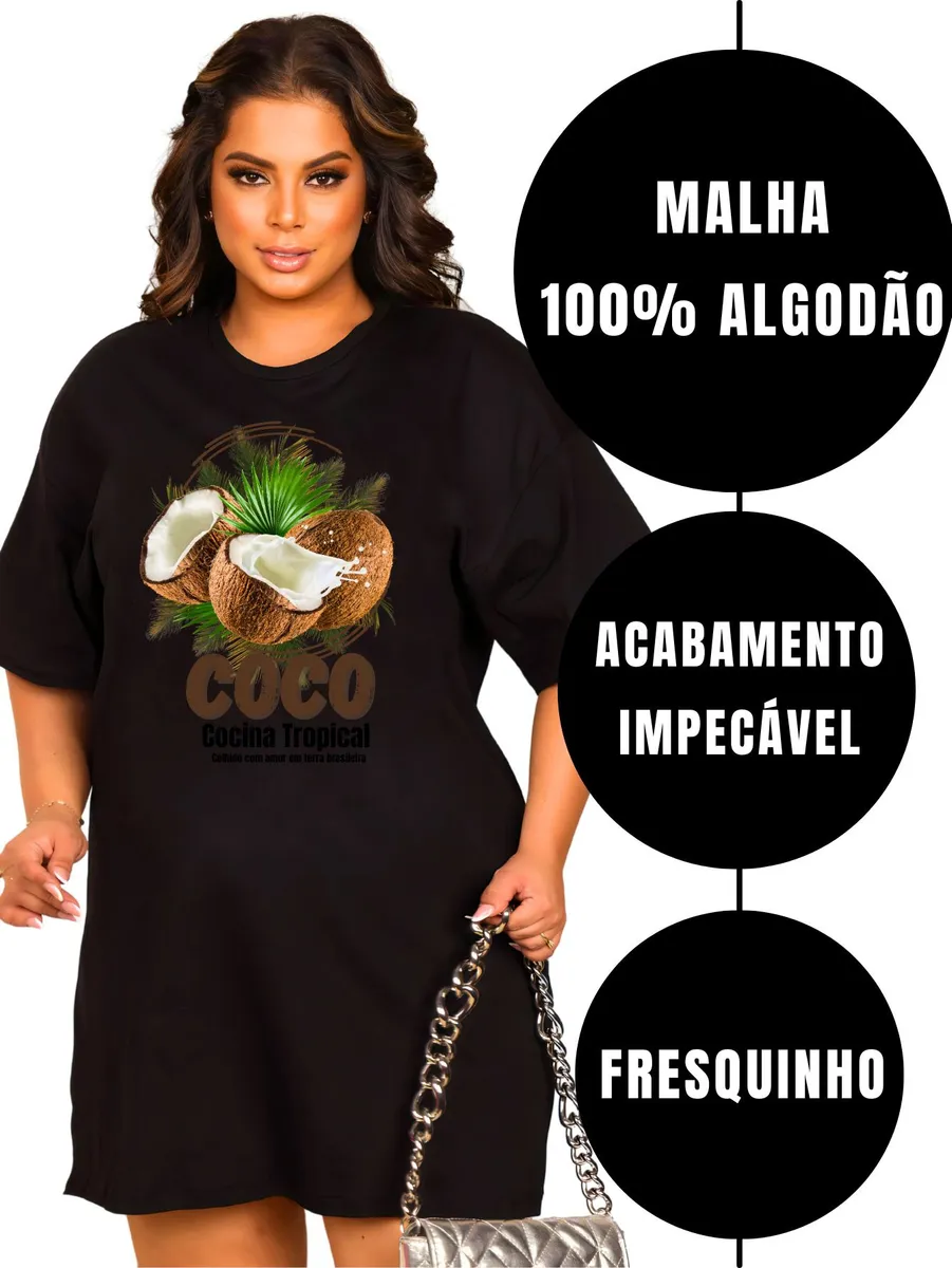 Vestido Plus Size Algodão Fresquinho Confortável Coco